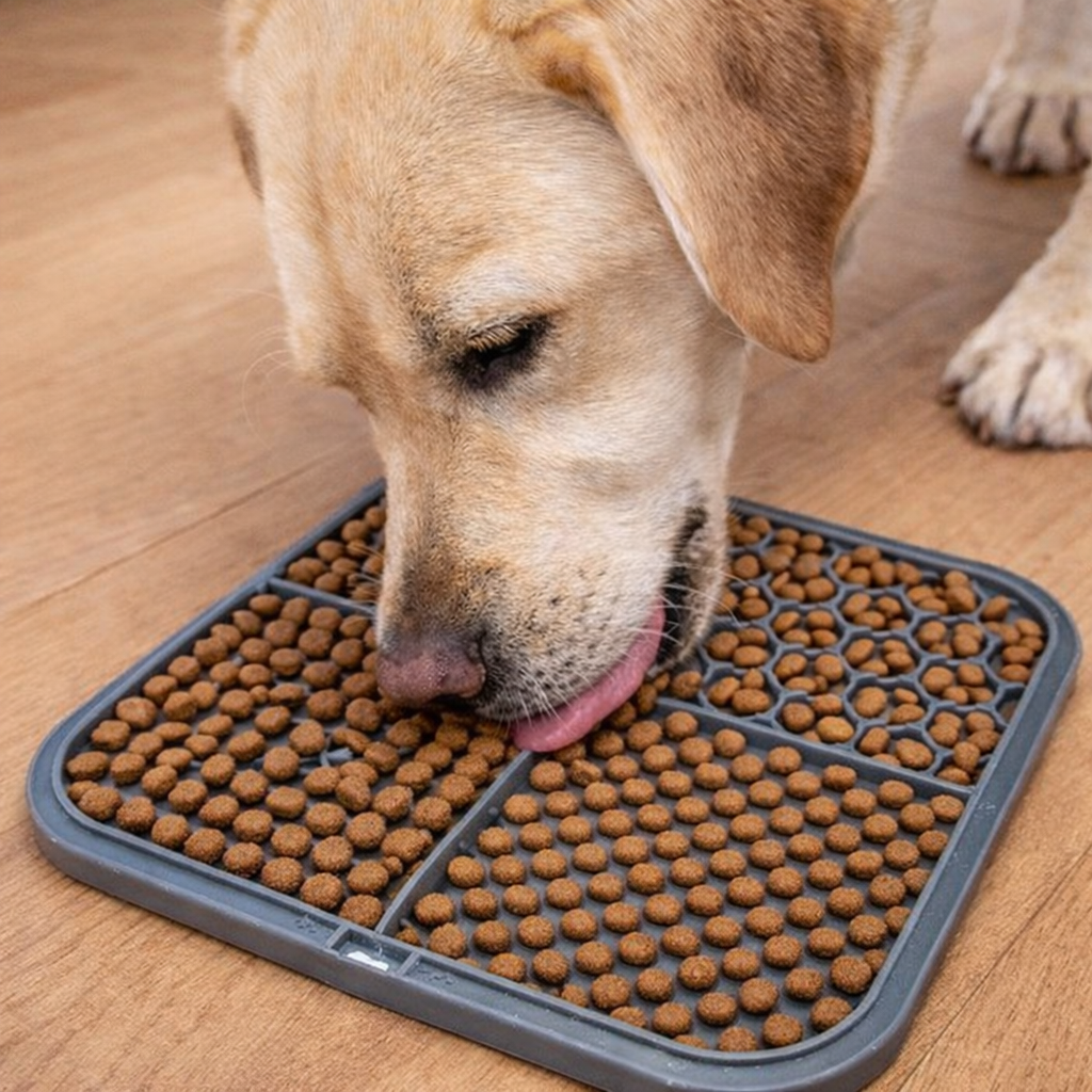 De ZUPPO Likmat stimuleert natuurlijk likgedrag, wat helpt bij een rustiger overgang naar het alleen-thuis moment.